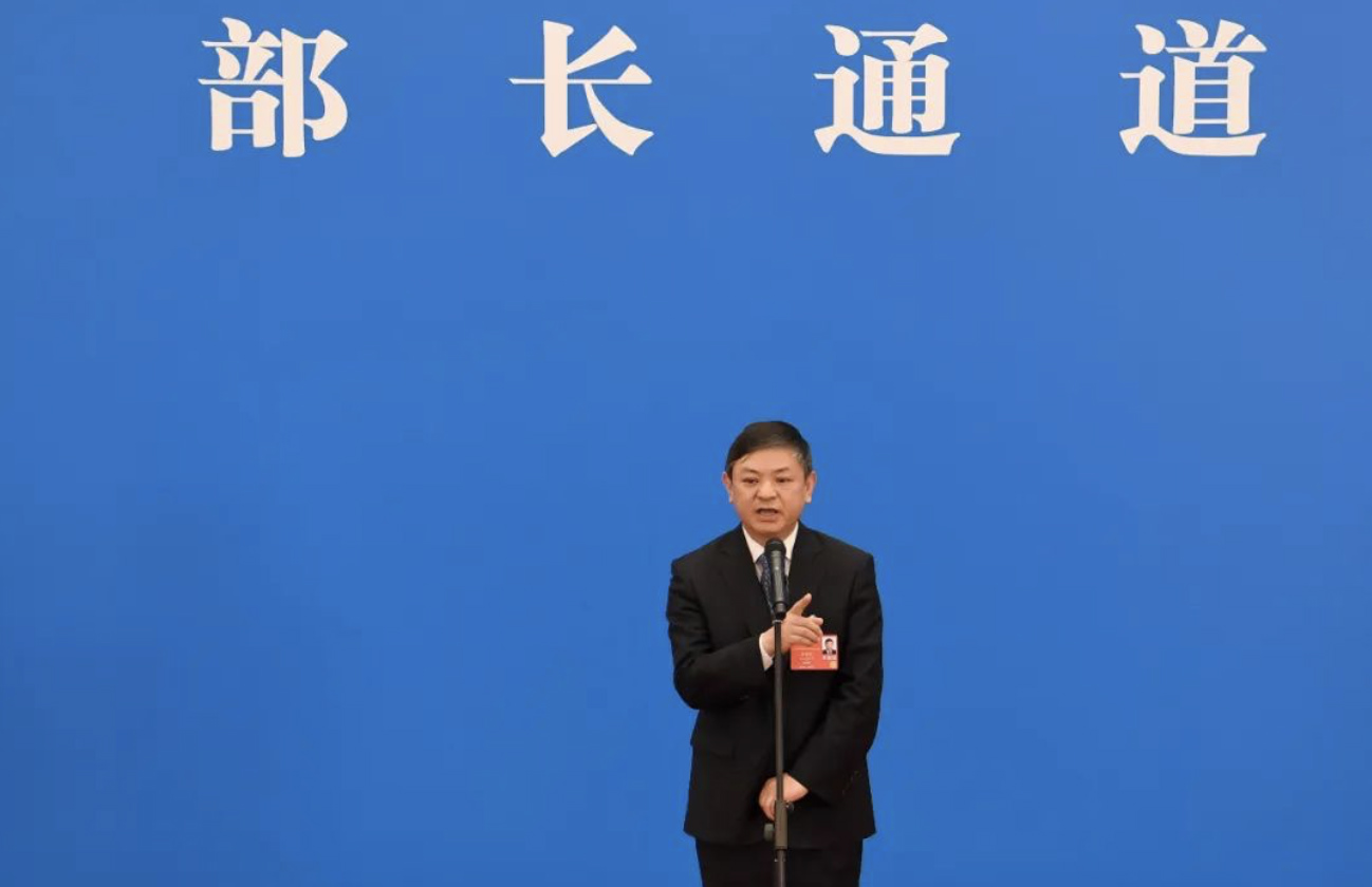 生態(tài)環(huán)境部部長(zhǎng)黃潤(rùn)秋在部長(zhǎng)通道答記者問(wèn)。生態(tài)環(huán)境部供圖。