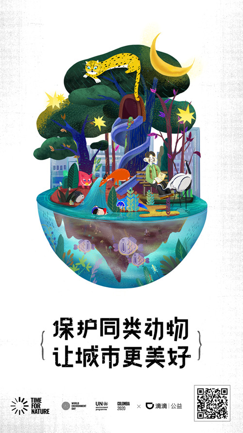 6月5日是世界環(huán)境日,今年世界環(huán)境日的主題是“關(guān)愛自然,刻不容緩”。滴滴公益攜手聯(lián)合國環(huán)境署,發(fā)起了“保護(hù)同類動物”活動。通過“尋找同類動物”的互動創(chuàng)意,帶大家一起了解城市野生動物的特點(diǎn)和困境。更從城市人類與野生動物共同的生存生活需求出發(fā),呼吁大家保護(hù)我們身邊的“城市野生居民”。在保護(hù)動物的同時(shí),本次活動也呼吁城市居民更多親近自然。