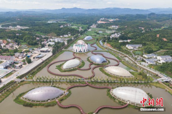 圖為航拍園區(qū)全景,七座異形大棚十分壯觀。 劉力鑫 攝