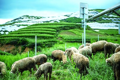 貴州威寧的居民在仙水窩光伏電站放養(yǎng)的羊群。新華社發(fā)