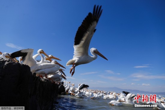 當(dāng)?shù)貢r間2月5日,墨西哥佩塔坦,成群鵜鶘棲息查帕拉湖。白鵜鶘從加拿大和美國飛到氣候較為溫暖的佩塔坦島躲避嚴(yán)寒,位于米卻肯州的查帕拉湖。