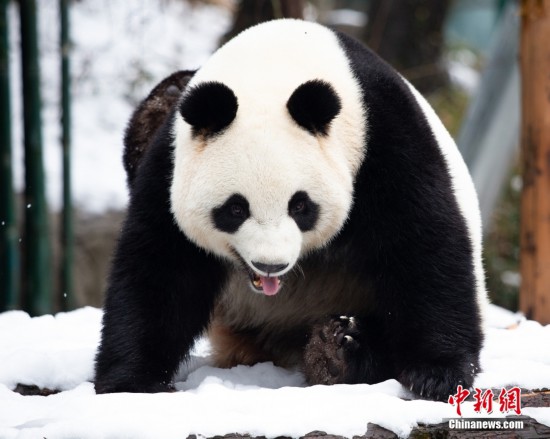 2月8日,雪后的南京紅山森林動物園銀裝素裹,大熊貓在雪地里嬉戲玩耍,享受“戲”雪的快樂。圖片來源:視覺中國