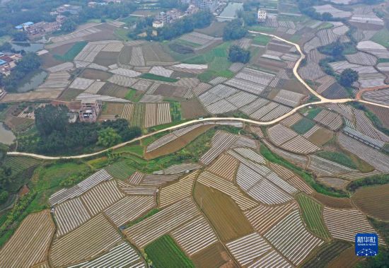 這是廣西南寧市興寧區(qū)五塘鎮(zhèn)田園春色(2月10日攝,無(wú)人機(jī)照片)。